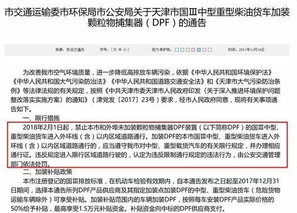 天津市要求國(guó)三柴油貨車(chē)加裝DPF才能進(jìn)外環(huán),山東省要求國(guó)三貨車(chē)加裝DPF;除此之外,深圳、北京等都相繼出臺(tái)了國(guó)五車(chē)必須要加裝DPF才能上牌的規(guī)定。