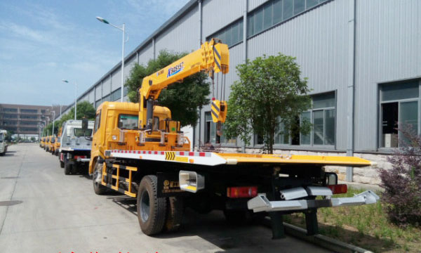 ◆東風(fēng)天錦平板帶吊機一拖二道路救援清障車: