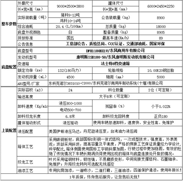 | 東風天錦26方散裝飼料運輸車 產品主要技術資料 | |||