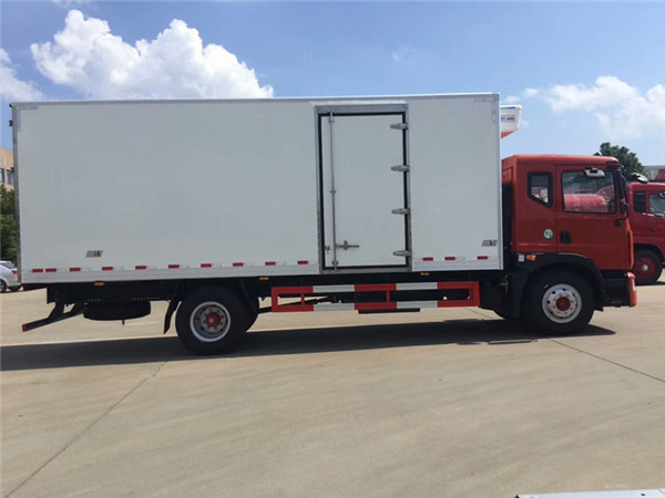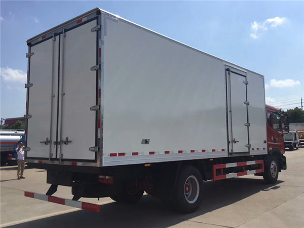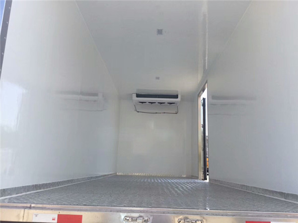 采用我公司液壓吸附一體成型生產線制造,保溫性能達到國家A級標準, 廂體內外面料采用 新款納米玻璃鋼(不吸光、隔熱性好、硬度強、抗氧化),廂體厚度為8cm,廂體尺寸:6800x2310x2500mm,內襯骨架為防銹處理武鋼優質輕鋼型材,保溫材料為無空隙填充聚氨酯發泡,廂體底部為鋁合金花紋板或選平面納米玻璃鋼,廂體采用鍍鋅不銹鋼包角,加厚型鋁合金包邊,后門框為不銹鋼,加厚型不銹鋼后門合頁及鎖件,廂體內部采用LED照明燈及廂體示寬燈。