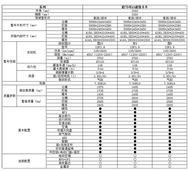 歐馬可S3系超級卡車底盤配置: